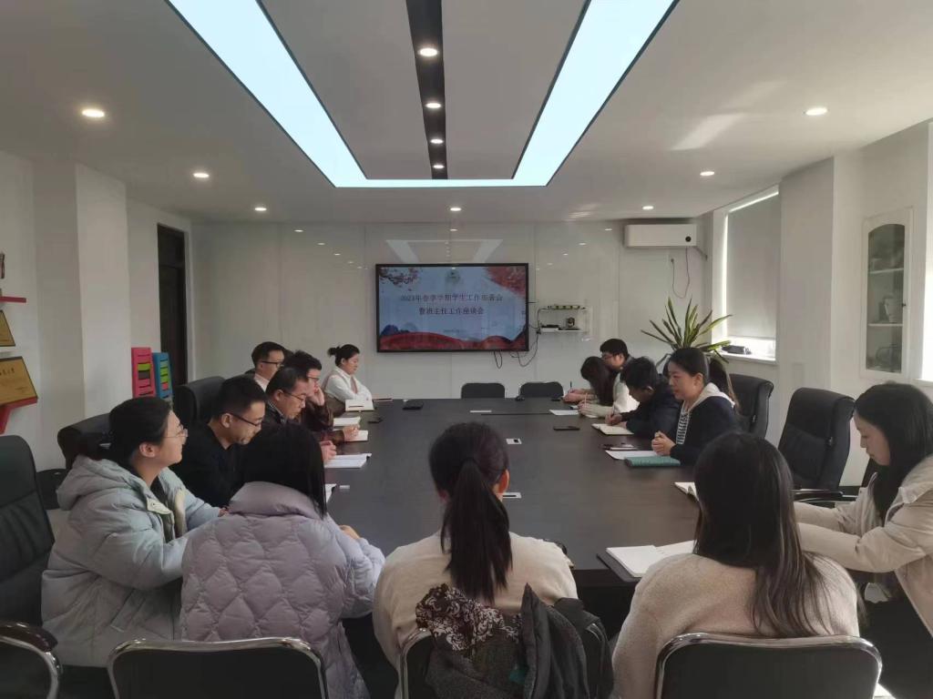 在博观楼429会议室召开2023年春季学期学生工作会议暨班主任工作交流会。伦理电影党委书记张作祥、党委副书记孙竹媛、全体班主任和辅导员参加此次会议。会议由学院学工办主任刘妍妍主持。